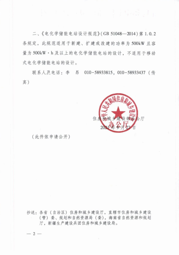 根據(jù)《住房和城鄉(xiāng)建設(shè)部辦公廳關(guān)于儲能電站消防設(shè)計審查驗收有關(guān)事項的函》(建辦科函[2021]403號)文件精神: