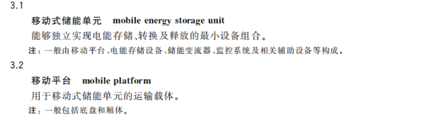 (2)《移動式儲能電站通用規(guī)范》GB/T 42715-2023第3.1條、3.2條:移動式儲能電站一般由移動平臺、電能儲存設(shè)備、儲能變流器、監(jiān)控系統(tǒng)及輔助設(shè)備組成。其中移動平臺一般包括底盤和廂體。